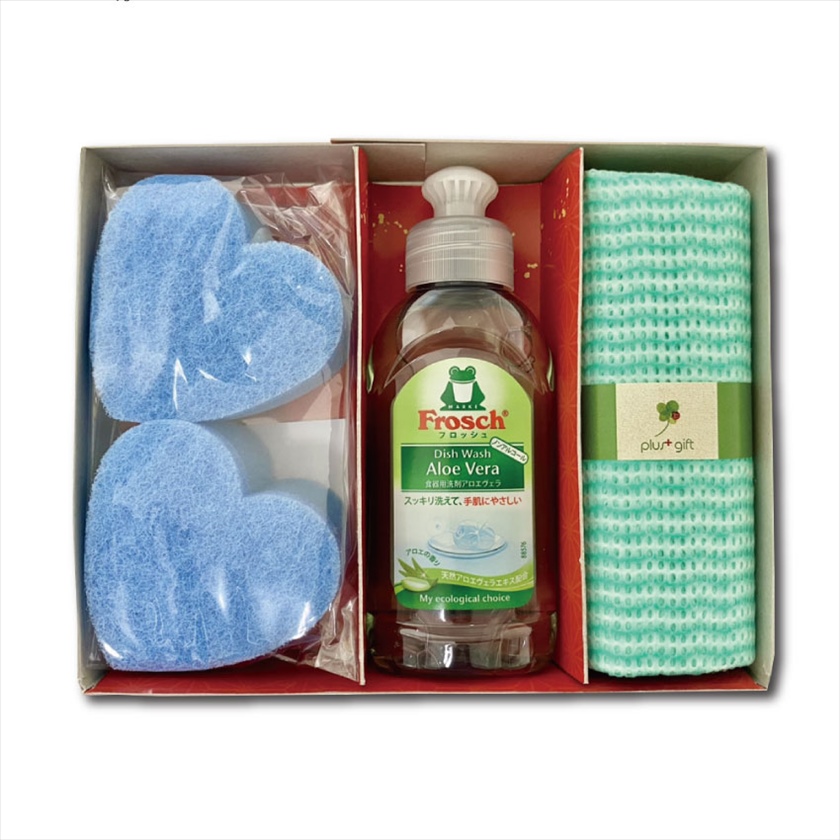 | カラー・種類 | フロッシュ食器用洗剤100ml×1本(アロエ)×ハートのスポンジミニ×2個・クラレカウンタークロス×1枚 |