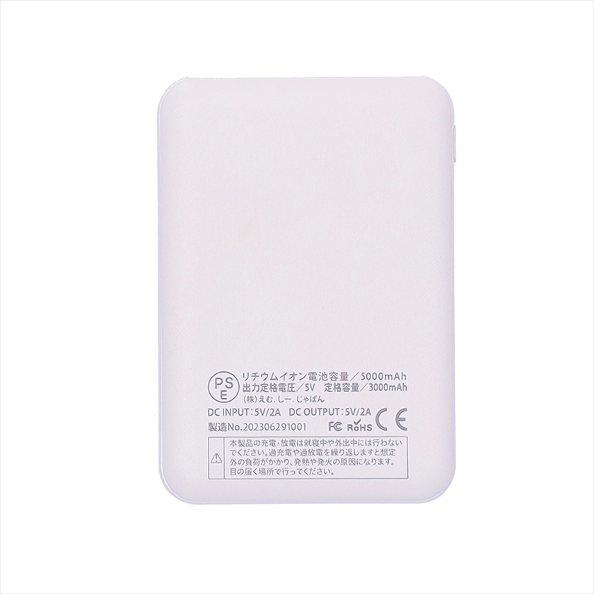| 備考 | 電源/USB 充電ケーブル付/電池容量/5000mAh 定格容量/3000mAh DC INPUT5V/2A DC OUTPUT5V/2A |