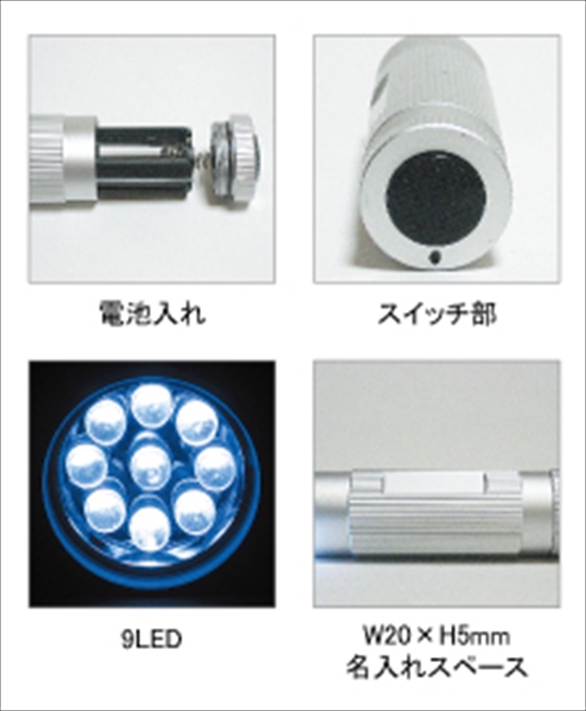 | 備考 | ■セット内容:9LEDライト、ストラップ、カラビナ、/電池:単4×3付 |