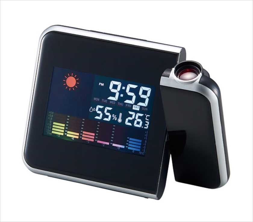| カラー・種類 | 本体x1 機能:時計、アラーム、スヌーズ、カレンダー、温度計、湿度計、気温変化グラフ、天気予報、時刻プロジェクター機能、バックライト |