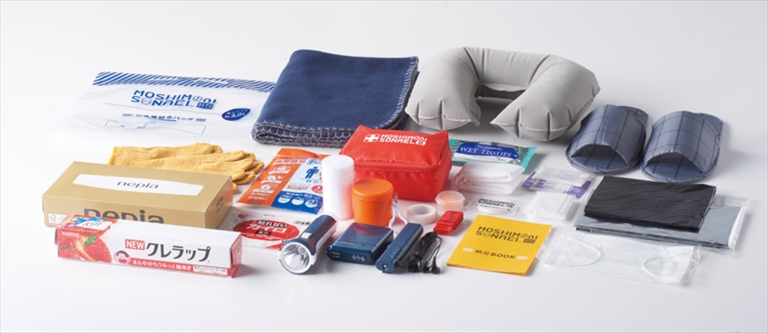 | 備考 | セット内容/持出袋・給水バッグ3L・LEDライト・ホイッスル・アルミシート(1200×800mm)・グローブ・圧縮タオル(240×400mm)・三角巾・ポリ袋×3・防災ブック・ばんそうこう大×4・小×2・カット綿×6・綿棒×10・テープ・ウェットティッシュ・不織布マスク・包帯・ポーチ・携帯簡易トイレ・ブランケット(600×900mm)・乾電池式モバイルバッテリー・FMポケットラジオ・使いきりカイロ・キッチンラップ・BOXティッシュ・携帯スリッパ・レインポンチョ・エアー枕・耳栓、ライト/単三乾電池1本使用(別途)・乾電池式モバイルバッテリー/単三乾電池4本使用(別途)・FMポケットラジオ/単四乾電池2本使用(別途) |