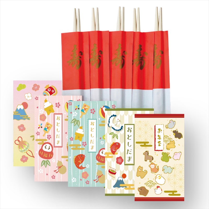 | カラー・種類 | 祝い箸5膳・お年玉袋5枚 |