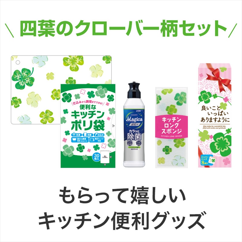 | 備考 | 食品検査済(ミニまな板シート・ジッパーバッグ・キッチンポリ袋) キッチンポリ袋耐熱温度:110℃ 内容:ライオン CHARMY Magica(速乾+カラッと除菌 シトラスミントの香り) 220ml・キッチンロングスポンジ・ミニまな板シート・ジッパーバッグ(8枚入)・キッチンポリ袋(30枚入) 各1 |