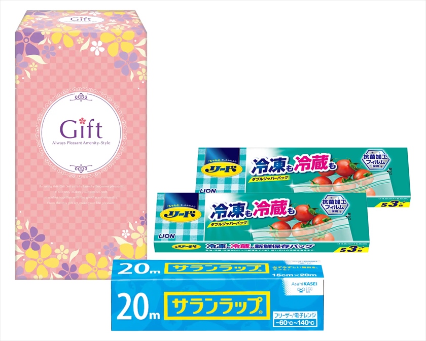 | カラー・種類 | ●サランラップ(15cm×20m)×1●ライオンリード冷凍も冷蔵も新鮮保存バッグS3枚《タイ製》×2 |