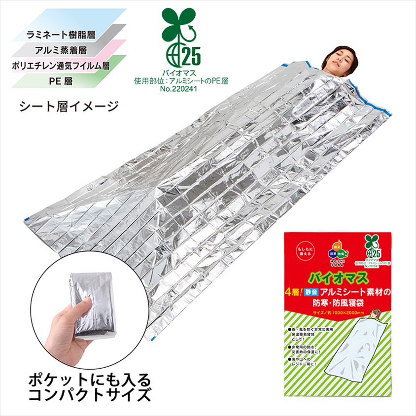 | 材質 | アルミ蒸着ポリエチレン(バイオマスプラスティック約25%配合) |