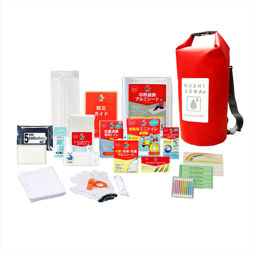 | カラー・種類 | ●セット内容:①防水deリュック、②冷熱遮断アルミシート、③防災ガイド、④マスク、⑤新ソーラー&ダイナモLEDライト(3色アソート、⑥携帯用ミニトイレ、⑦抗菌消臭・簡易トイレ、⑧レインポンチョホワイト、⑨除菌ジェル、⑩防災用ウェットティッシュ(20枚入)、⑪ポケットティッシュ、⑫eco便利バッグ、⑬アルミLEDライト&ホイッスル(3色アソート)、⑭4層!防寒・防風アルミシート、⑮軍手、⑯ロープ、⑰笛、⑱タオル、⑲絆創膏5枚、⑳綿棒10P |