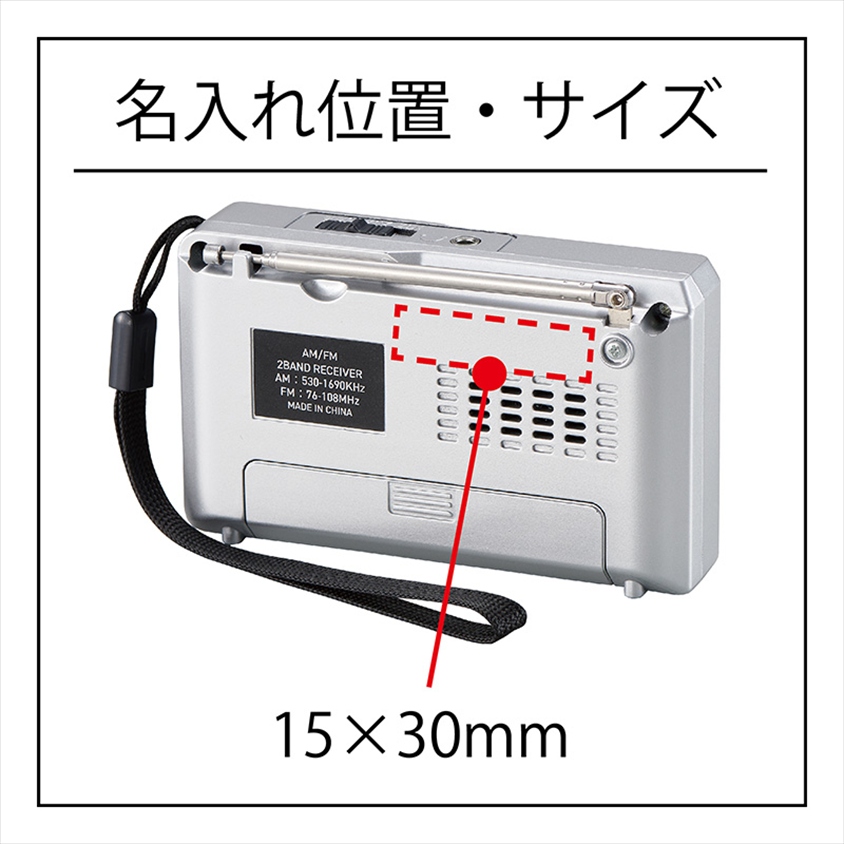 | 備考 | 単3電池×2本(別売) /付属品:両耳イヤホン/AMワイドFM対応/●機能:①AM、FMラジオ(ワイドFM対応)、②同調ランプ |