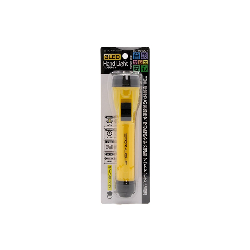 | 備考 | 単3形乾電池×2本(別売)/防水等級IPX3(防雨形仕様)、明るさ最大約40ルーメン |