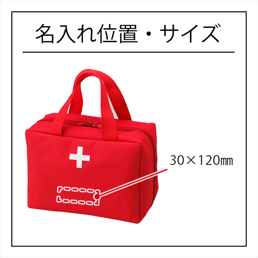 | カラー・種類 | ●セット内容:①救急バッグ、②カット綿×3枚、③カットガーゼ×3枚、④包帯、⑤救急絆創膏2サイズ×各3枚(医療機器届出番号:27B2×00110000008)、⑥サージカルテープ、⑦清浄綿 2枚入×3包、⑧ハサミ、⑨ピンセット、⑩毛抜き、⑪耳かき、⑫マスク、⑬応急手当てポケットブック |