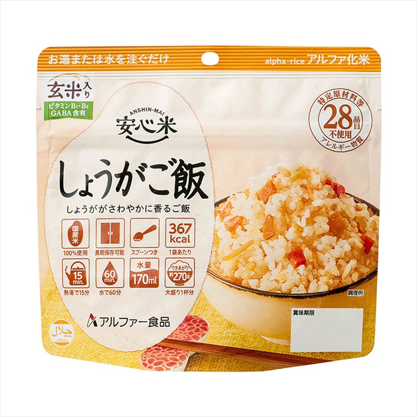 | 材質 | うるち米(国産)、味付乾燥具材(水煮たけのこ、しょうが、加工米(玄米(国産))、食塩、乾燥にんじん、植物油、デキストリン、ほたてエキス、こんぶエキス、大麦乳酸発酵液ギャバ、糖加工品、酵母エキス)/トレハロース、調味料(アミノ酸)、カラメル色素、ビタミンB1、ビタミンB2 |