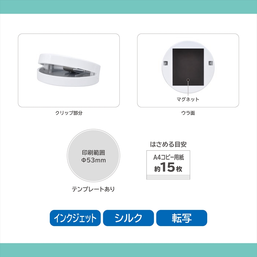 | 印刷範囲 | UVインクジェット:印刷範囲:Φ53㎜(テンプレートあり) |