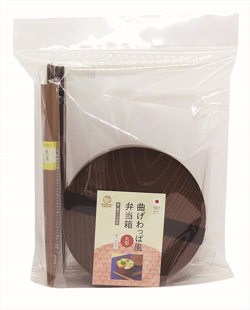 | 材質 | 本体・上フタ/PET・ABS樹脂(山中塗り加工)(耐熱温度140℃、耐冷温度-30℃)、中フタ/ポリエチレン(耐熱温度80℃、耐冷温度-20℃)、ゴムバンド/天然ゴム・ポリエステル、箸ケースフタ/ABS樹脂(山中塗り加工)、箸ケース本体/ABS樹脂、箸/天然木 |