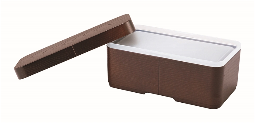 | 材質 | 本体・上フタ/PET・ABS樹脂(山中塗り加工)(耐熱温度140℃、耐冷温度-30℃)、中フタ/ポリエチレン(耐熱温度80℃、耐冷温度-20℃)、ゴムバンド/天然ゴム・ポリエステル |