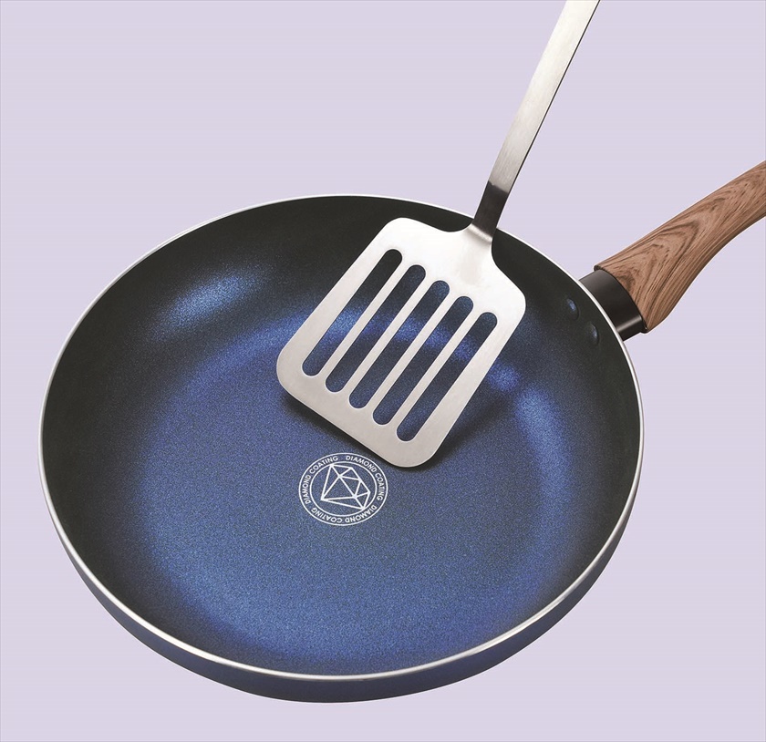 | 材質 | 表面加工/内面:ダイヤモンド微粒子配合ふっ素樹脂加工、本体/アルミニウム合金(底の厚さ2.3mm)、はり底/18-0ステンレス鋼、取手/フェノール樹脂(木目調転写) |