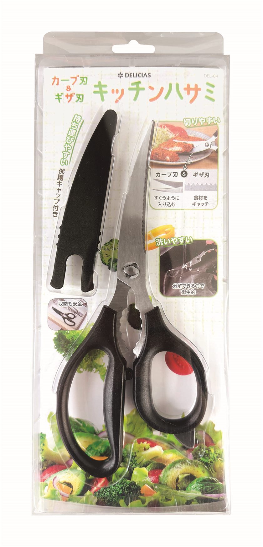 | 備考 | キッチンハサミ/217×90×13mm (92g)保護キャップ/113×27×8mm (6g) |