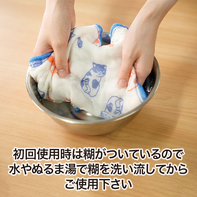 使い始めはぬるま湯でよく洗い、糊を落としてからご使用ください。