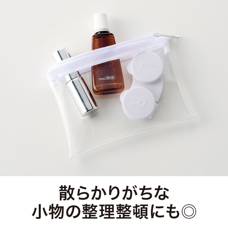 PVC素材なので軽く、中身が見えて使いやすいのもポイントです。