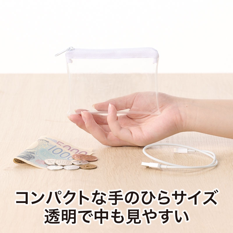 コンパクトな約9×12cmサイズで、小銭やカードを入れてお財布代わりに使えるほか、コスメやお菓子、ケーブル等の小物ポーチとしても便利。