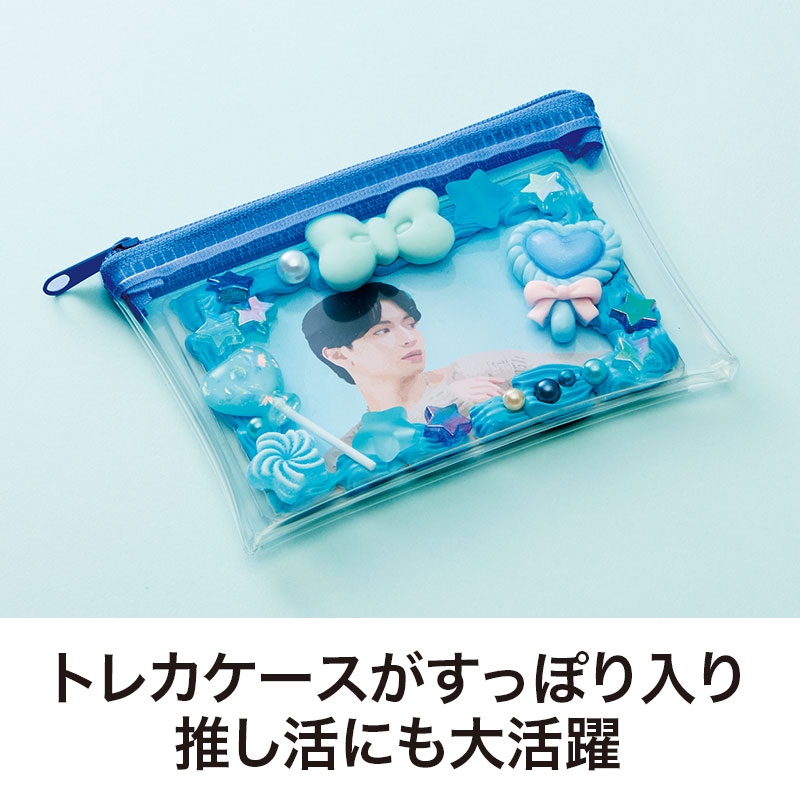 トレカケースがすっぽり入るサイズ感で、デコレーションしたカードの保護や持ち運びにも役立ちます。