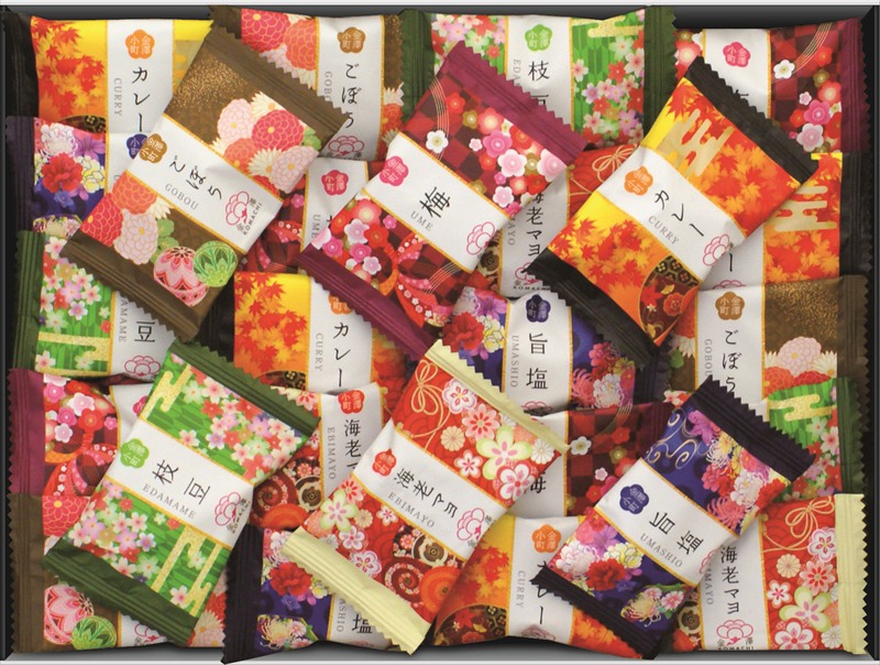 | カラー・種類 | おかき(海老マヨ、カレー、枝豆、旨塩、梅、ごぼう) 135g×1袋 |