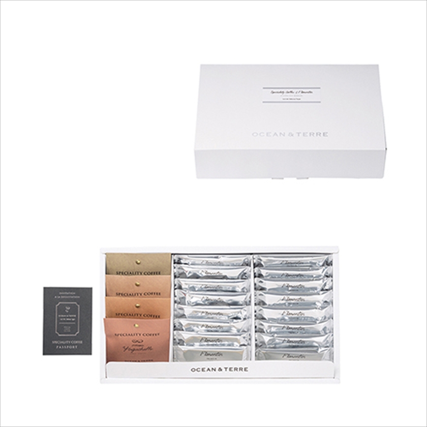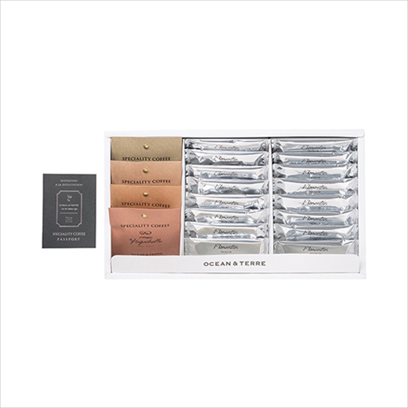| カラー・種類 | ドリップ珈琲(ミャンマー スターマウンテン、ブラジル ショコラ、コスタリカ ハニー、エチオピア イルガチェフェ)4種(各8g×1)、フロランタンパイ×16、パスポート付(スペシャルティコーヒー説明書) |