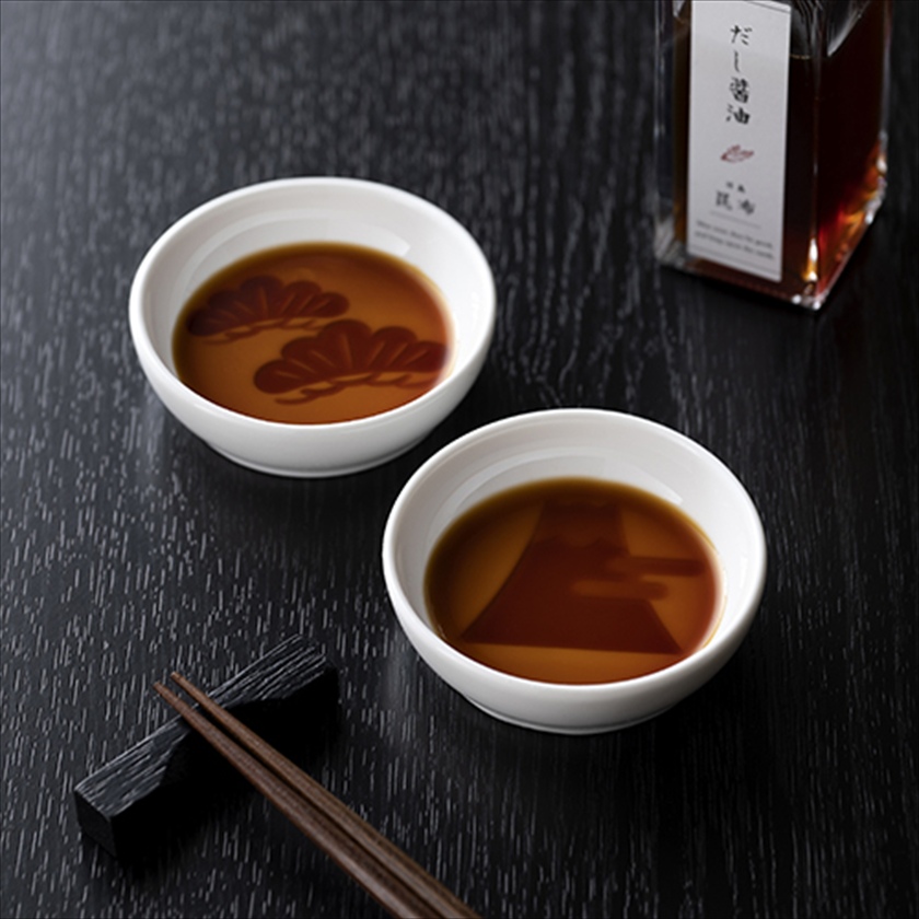 | カラー・種類 | 北海道日高昆布醤油100ml×1、浮出し醤油皿 (松)×1、浮出し醤油皿 (富士山)×1 ※醤油皿サイズ/φ78×23mm |