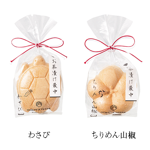 | カラー・種類 | 最中(鯛茶漬け)8.3g×1、最中(梅茶漬け)8.1g×1、最中(鮭茶漬け)9.3g×1、最中(たらこ茶漬け)8.1g×1、最中(わさび茶漬け)8.3g×1、最中(ちりめん山椒茶漬け)8.1g×1、最中(ふぐ茶漬け)8.3g×1、最中(ゆずこしょう茶漬け)8.1g×1 のいずれか1個 【種類の指定はできません】※もち米 100%(国産)最中種 |