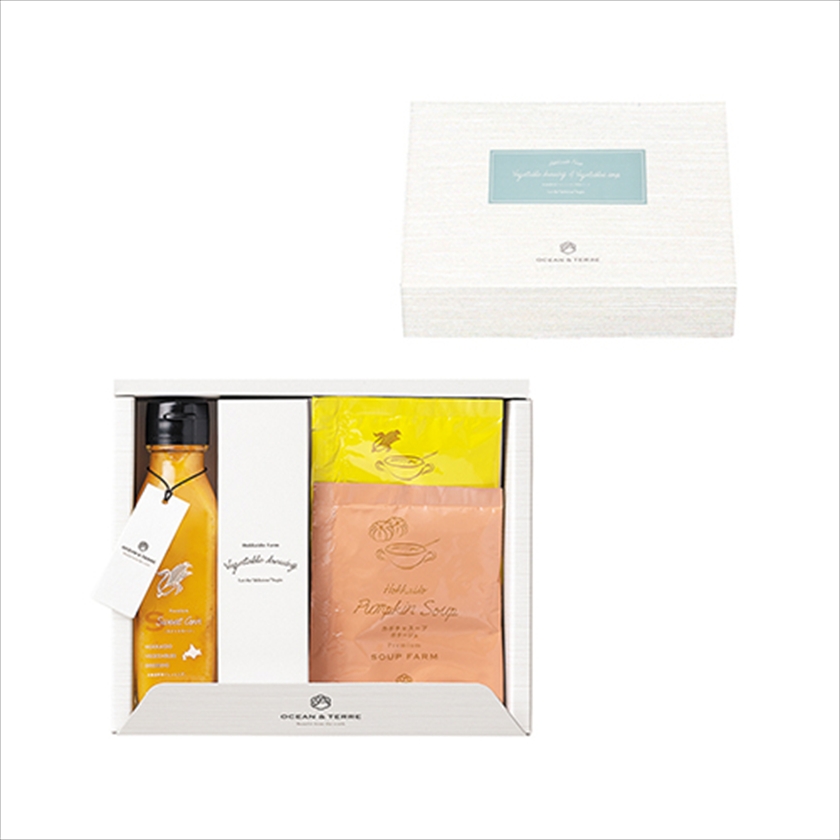 | カラー・種類 | 野菜ドレッシングスイートコーン120ml×1、北海道産かぼちゃス-プ16.5g×1、北海道産スイートコーンス-プ16.5g×1 |