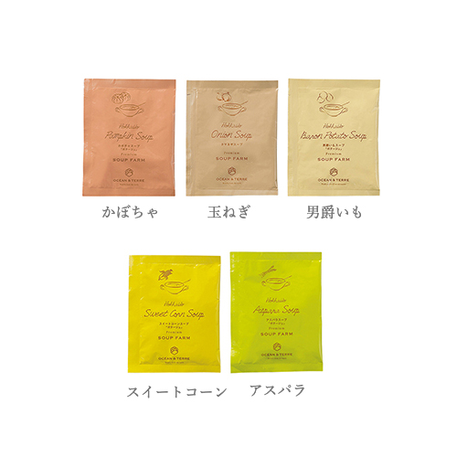 | カラー・種類 | 北海道産かぼちゃス-プ16.5g×2、北海道産玉ねぎス-プ7g×2、北海道産男爵いもス-プ20g×2、北海道産スイートコーンス-プ16.5g×2、北海道産アスパラス-プ16.5g×2 |