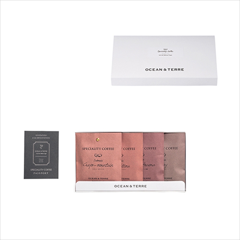 | カラー・種類 | ドリップ珈琲(インドネシア ガヨマウンテン、コロンビア ヴィラファティマ、メキシコ オアハカオーロラ、タンザニア ハニー)4種(各8g×1)、パスポート付(スペシャルティコーヒー説明書) |