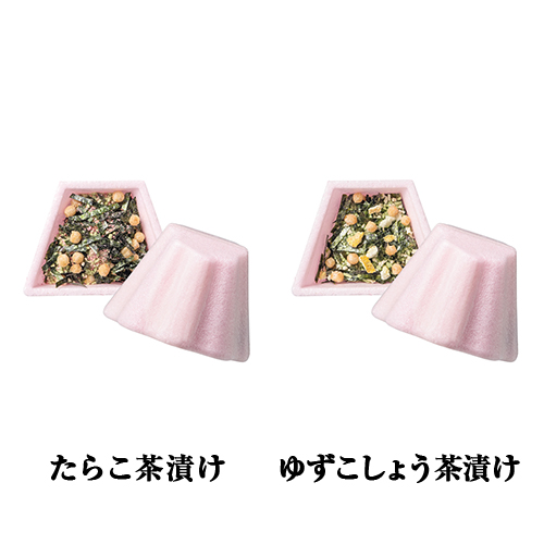 | カラー・種類 | 最中(鯛茶漬け)8.7g×1、最中(たらこ茶漬け)8.7g×1、最中(鮭茶漬け)9.7g×1、最中(梅茶漬け)8.7g×1、最中(わさび茶漬け)8.7g×1、最中(ゆずこしょう茶漬け)8.7g×1、最中(ふぐ茶漬け)8.7g×1、最中(ちりめん山椒茶漬け)8.7g×1※もち米 100%(国産)最中種 |