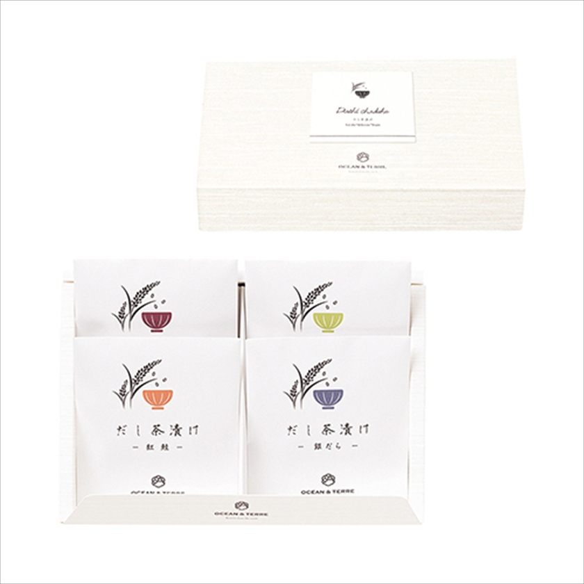| カラー・種類 | だし茶漬けの素4.5g×4、はまぐり2個×1、紅鮭1切×1、紀州南高梅1粒×1、銀だら1切×1、白煎りごま1g×4 |