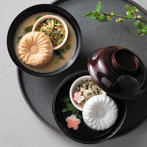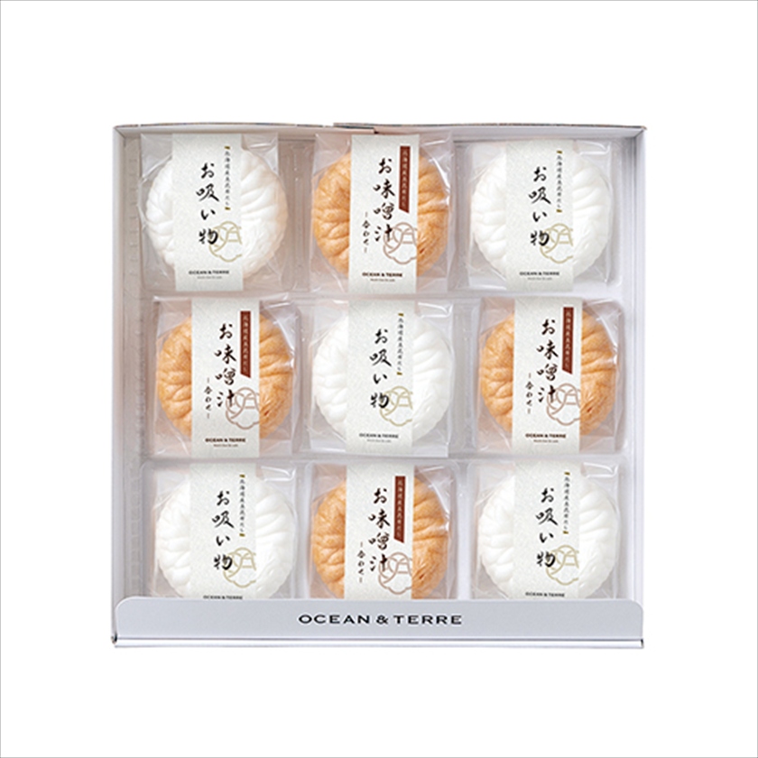 | カラー・種類 | お吸い物最中(白菊)7.3g×5、味噌汁最中(茶菊)10.5g×4※もち米 100%(国産)最中種 |
