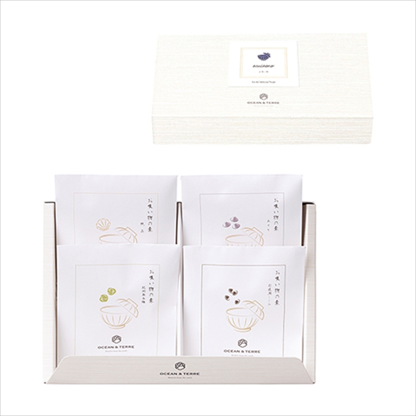 | カラー・種類 | お吸い物の素2.9g×4、帆立2~4個×1、紀州南高梅1粒×1、あさり30g×1、宍道湖しじみ30g×1、白煎りごま1g×4 |