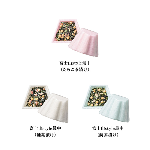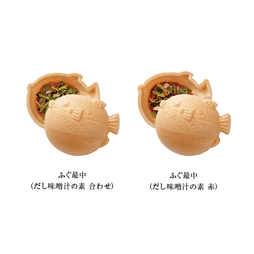 | カラー・種類 | お吸い物最中(白菊)7.3g×2、味噌汁最中10.5g(茶菊)×1、富士山style最中(たらこ茶漬け)8.7g×1、富士山style最中(鮭茶漬け)9.7g×1、富士山style最中(鯛茶漬け)8.7g×1、ふぐ最中(だし味噌汁の素 合わせ)11.7g×2、ふぐ最中(だし味噌汁の素 赤)11.7g×1※もち米 100%(国産)最中種 |