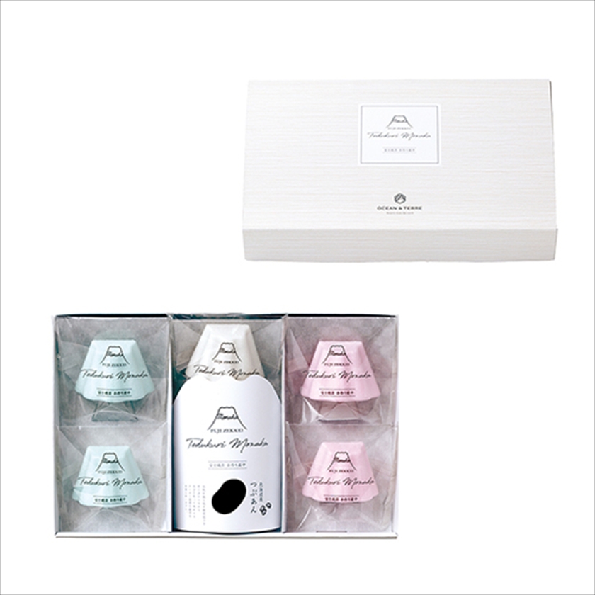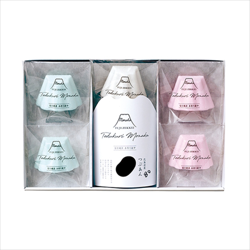 | カラー・種類 | FUJISAN最中(水色)1.85g×2、FUJISAN最中(白)1.85g×1、FUJISAN最中(赤)1.85g×2、粒あん35g×3※もち米100%(国産)最中種 |
