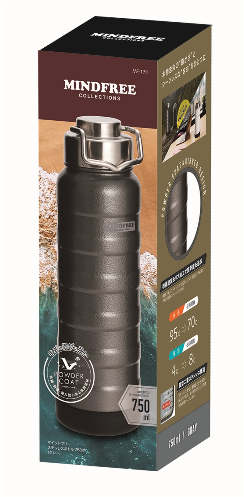 ◆ MF-17H マインドフリー 真空二重ステンレスボトル 750ml グレー