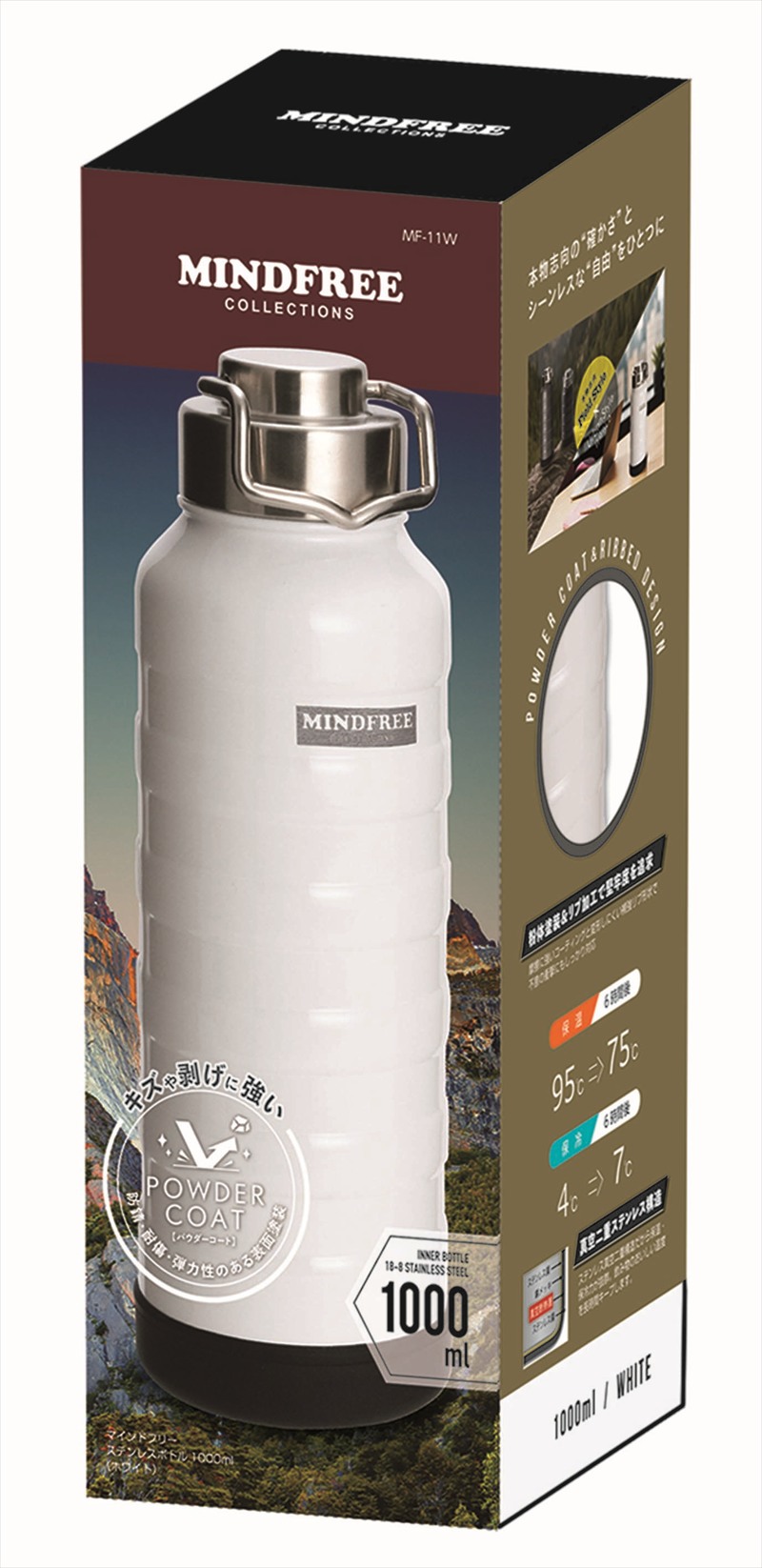 ◆ MF-11W マインドフリー 真空二重ステンレスボトル 1000ml ホワイト