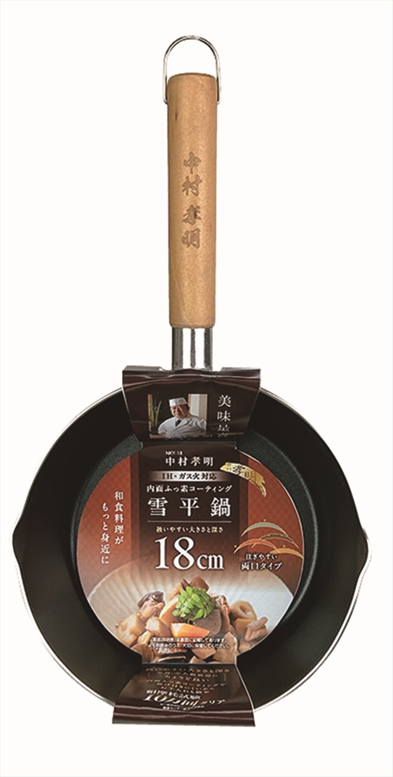 | 材質 | 表面加工/内面:ふっ素樹脂塗膜加工 材質/本体:アルミニウム合金、はり底:ステンレス(底の厚さ2.0mm) 取手/天然木 |