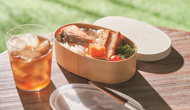 | 材質 | 本体・上フタ/PET・ABS樹脂(山中塗り加工)(耐熱温度140℃、耐冷温度-30℃)、中フタ/ポリエチレン(耐熱温度80℃、耐冷温度-20℃)、ゴムバンド/天然ゴム・ポリエステル |