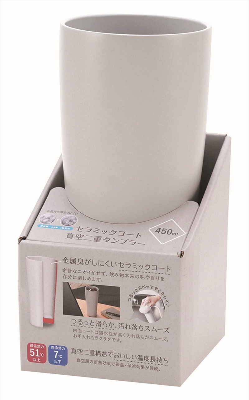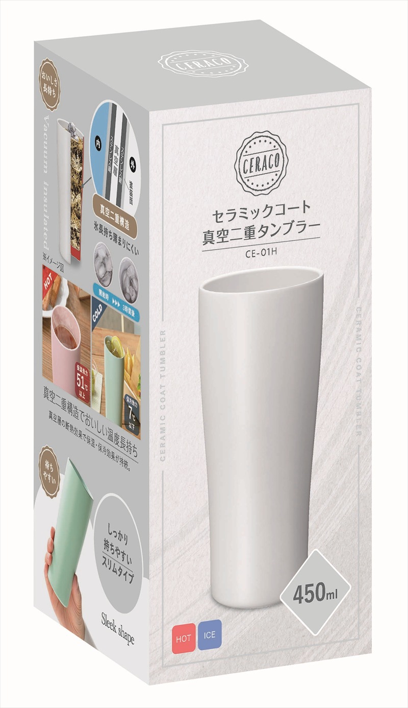 ◆ CE-01H セラコ 真空二重 セラミックコートタンブラー450ml グレー