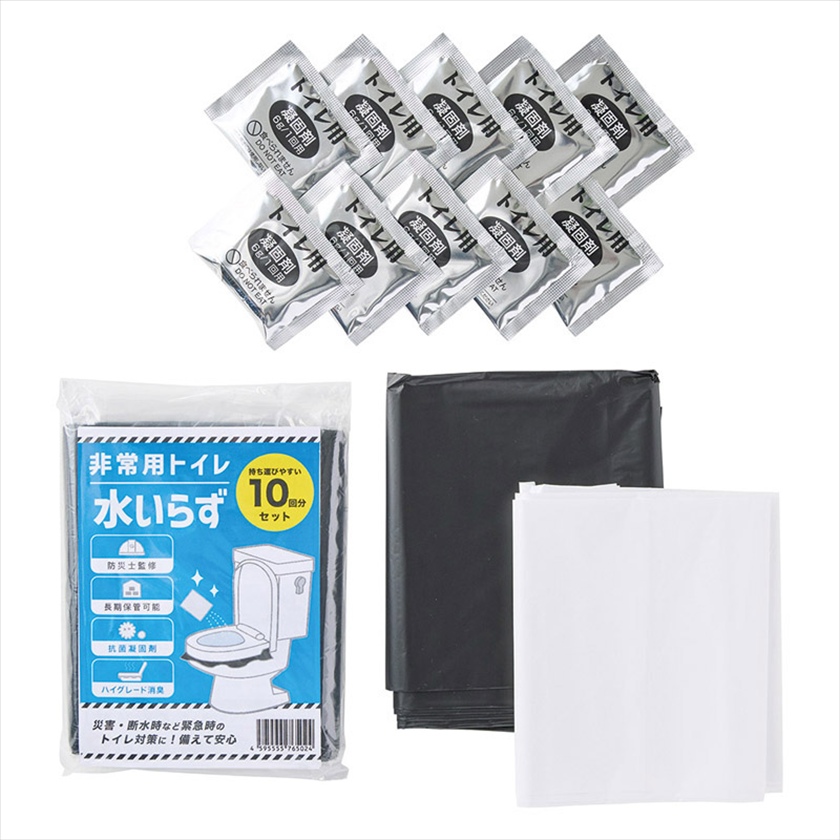 | カラー・種類 | ●セット内容:排便袋(黒):10枚、処理袋(白):1枚 消臭抗菌性凝固剤(7g):10袋、取扱説明書:1枚 |