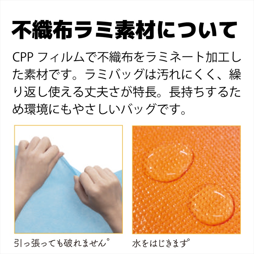 | 材質 | 本体/PP+CPPラミ不織布、持ち手/PP不織布 |