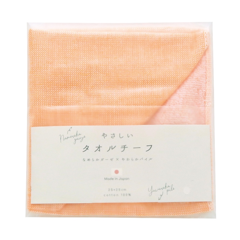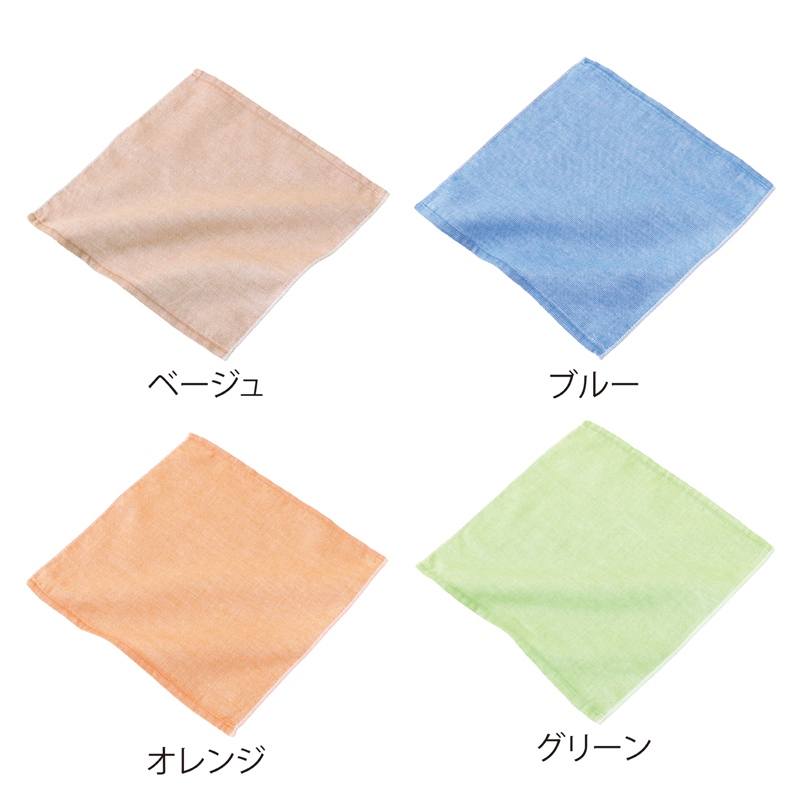 表面がガーゼ、裏面がパイルのタオルチーフ。極細糸で織り上げた、薄さと柔らかな風合いが特徴です。