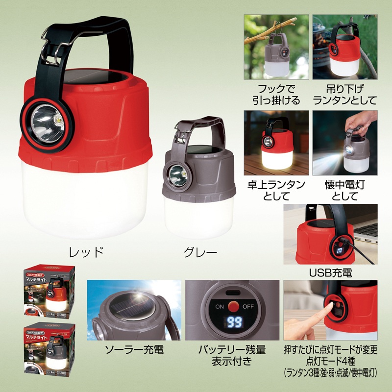 ソーラー&USB充電式マルチライト(グレー)