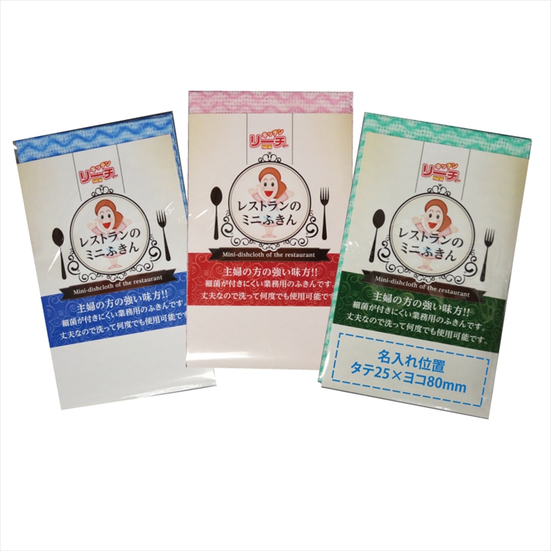 | カラー・種類 | ミニふきん×1枚(赤、青、緑3色 色指定不可) |