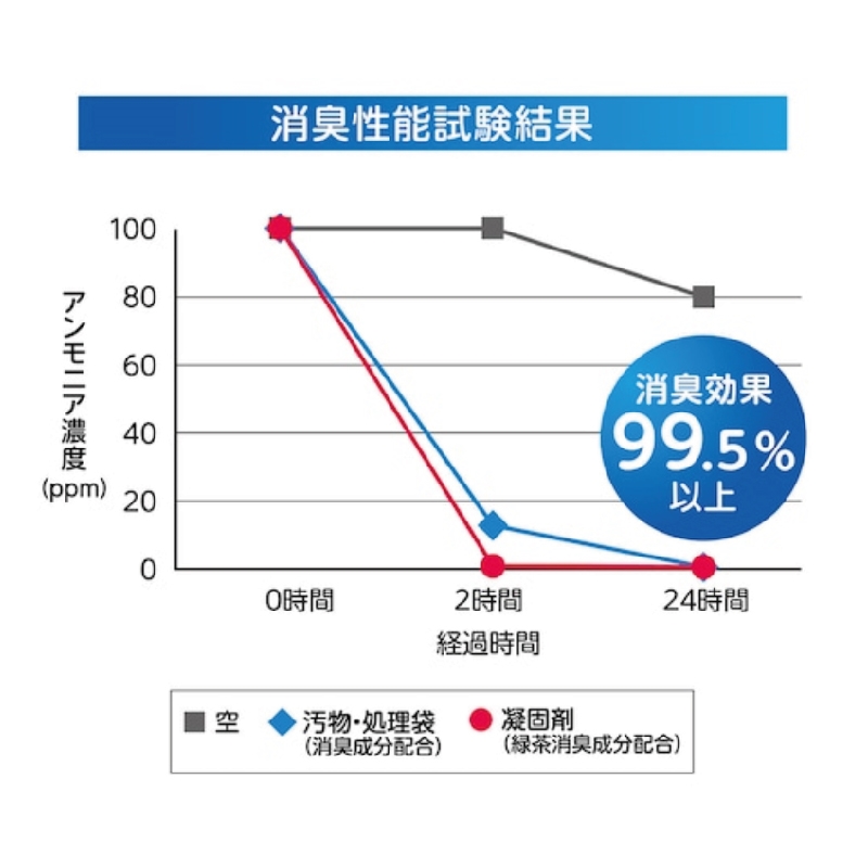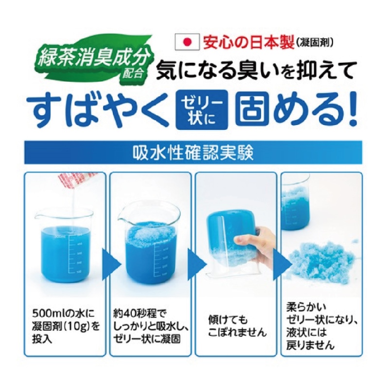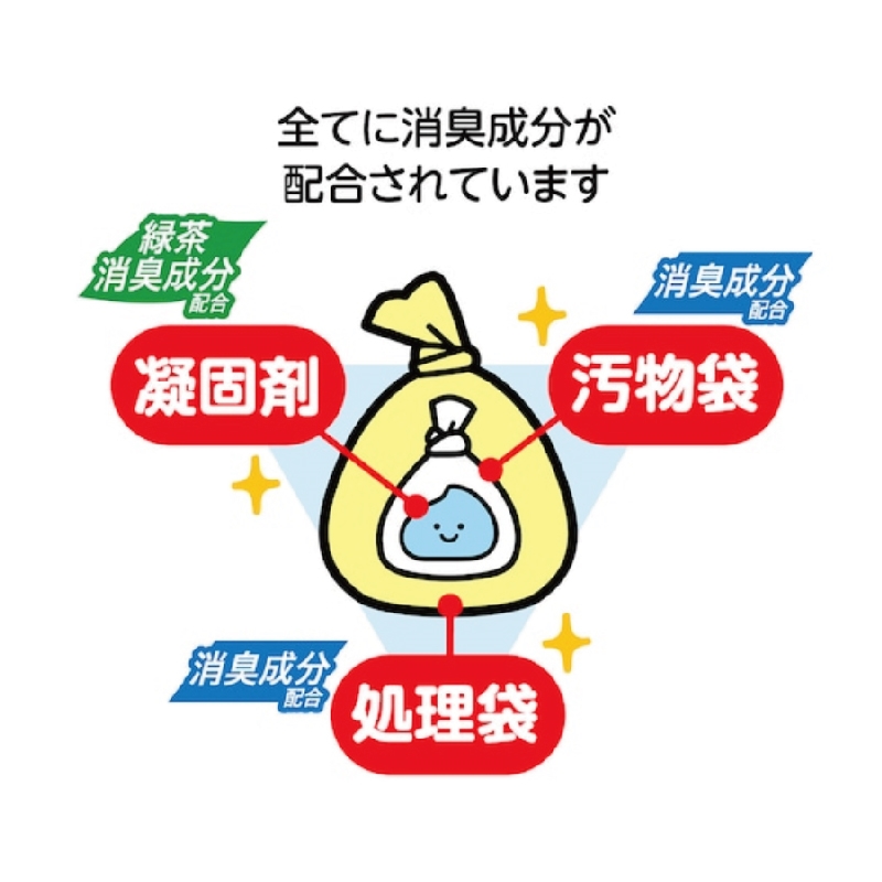 | 材質 | ■材質:[凝固剤]高吸水性樹脂・緑茶消臭剤 [処理袋・汚物袋]PE・消臭剤 |
