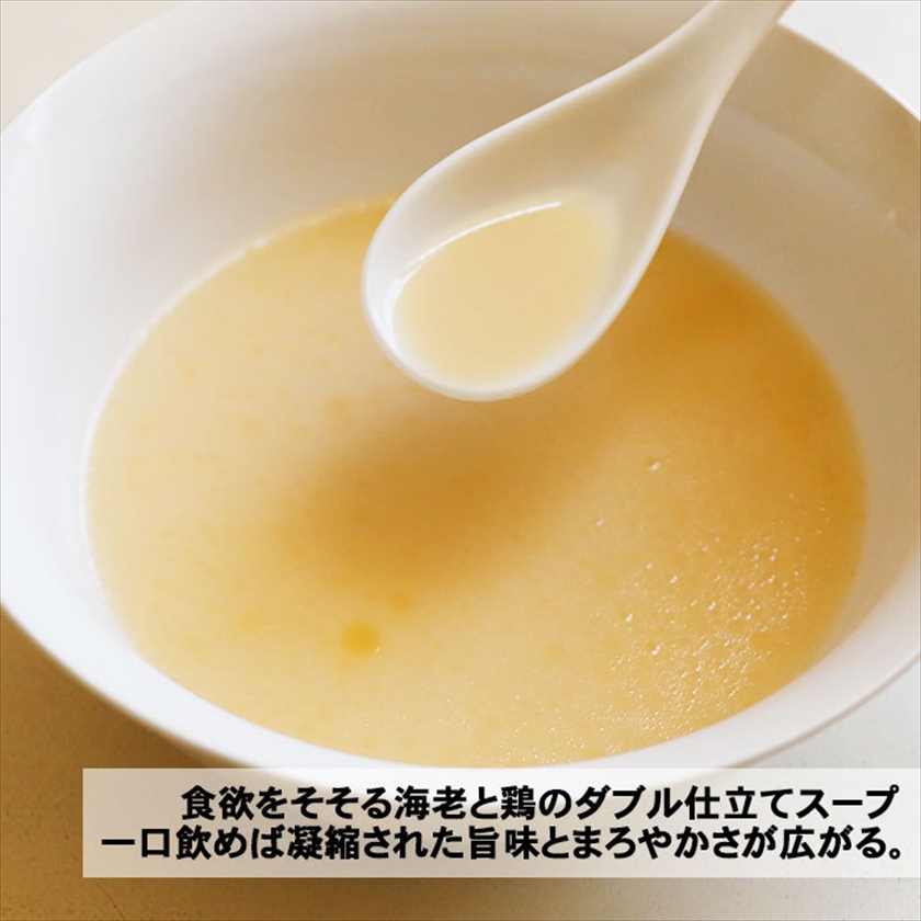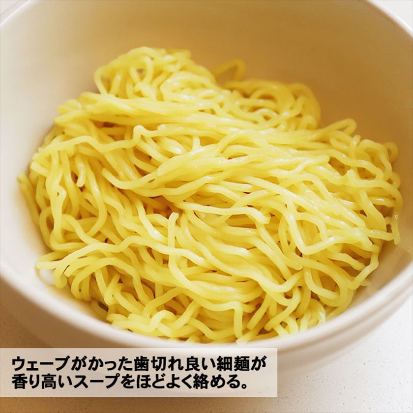 | 材質 | 麺(小麦粉(国内製造)、小麦蛋白、還元水飴、食塩/加工澱粉、酒精、かんすい、クチナシ色素、(一部に小麦を含む)) スープ(肉エキス(国内製造)、エビ調味料、しょうゆ、食塩、動物油脂、砂糖、植物油脂、ゼラチン、香辛料/調味料(アミノ酸等)、酒精、増粘剤(加工デンプン、キサンタン)、酸化防止剤(ビタミンE)、カラメル色素、(一部に小麦・えび・大豆・鶏肉・ゼラチンを含む)) |