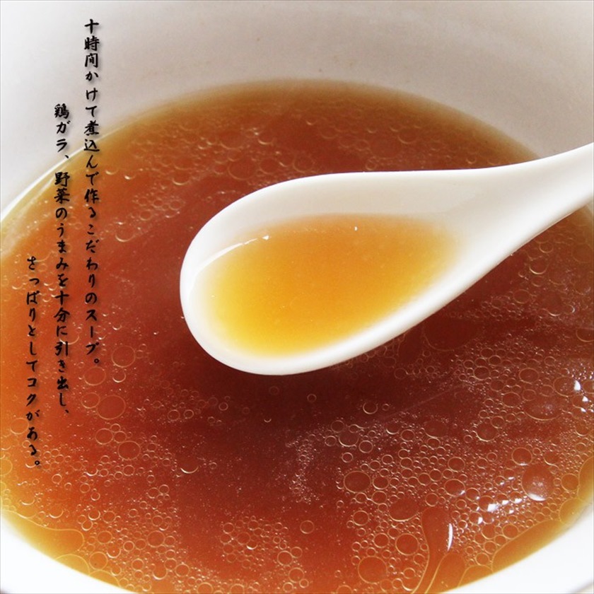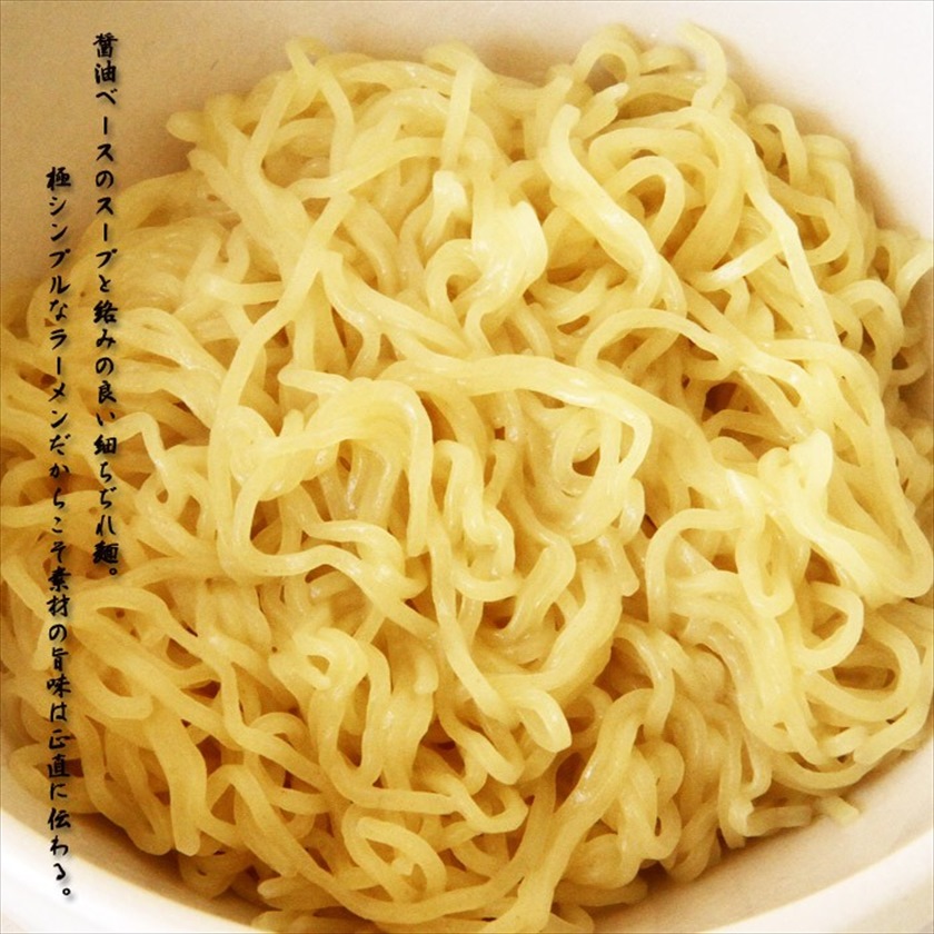 | 材質 | 麺(小麦粉(国内製造)、還元水飴、食塩/酒精、かんすい、クチナシ色素、加工澱粉、(一部に小麦を含む)) スープ(畜肉エキス、豚脂、食塩、魚介エキス、しょうゆ、たん白加水分解物、野菜エキス、香辛料、かつおぶし粉末、砂糖、いわし煮干し粉末、昆布エキス/調味料(アミノ酸等)、酒精、加工でんぷん、カラメル色素、(一部に小麦・大豆・豚肉・鶏肉・さばを含む) ) |